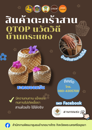 สามารถติดตามและชมตัวอย่างผลิตภัณฑ์ได้ที่ เพจfacebook : สานกระแชง